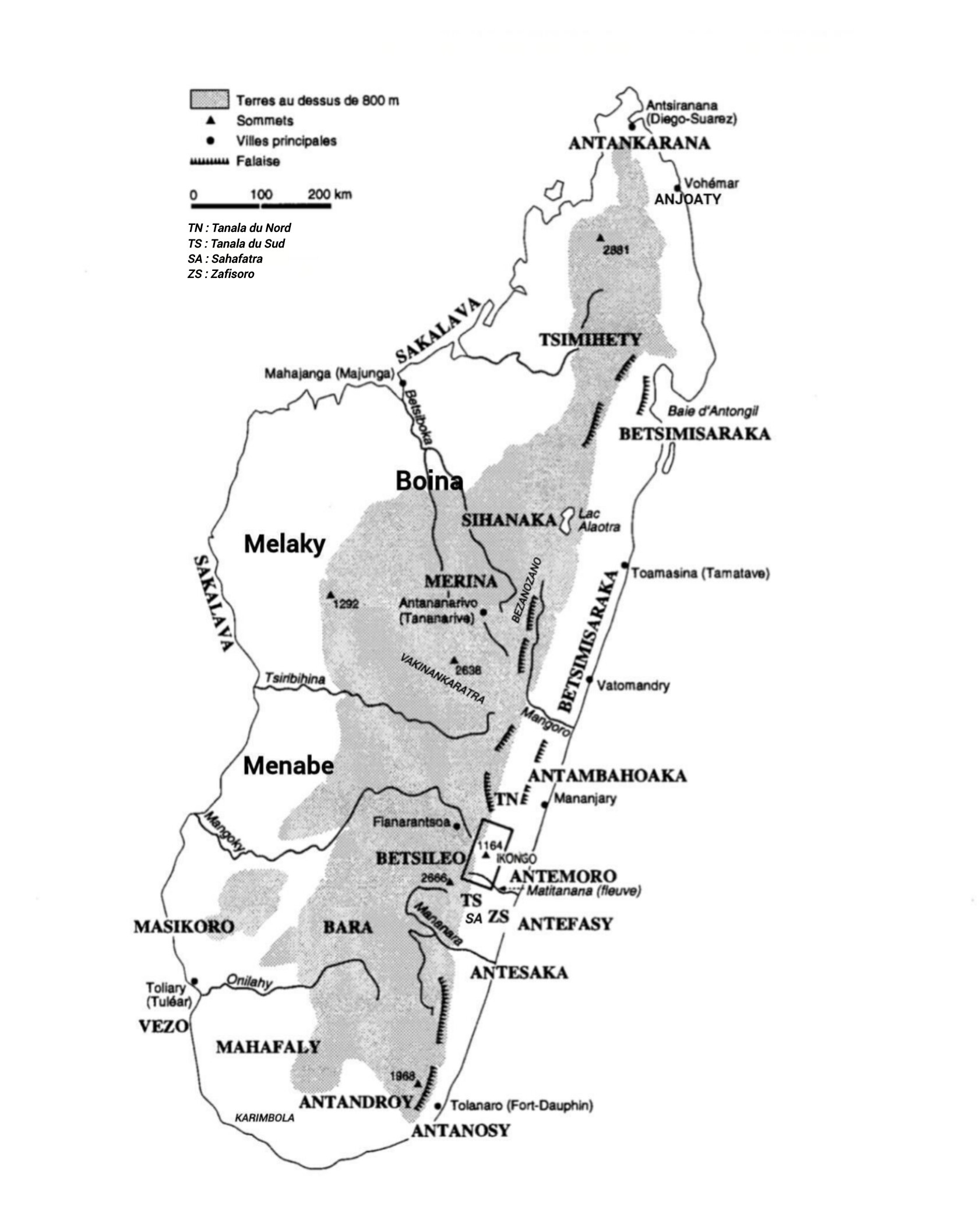 29 Существует несколько исторических исключений: некоторые каменные дома, построенные на крайнем юге, королевские здания в столице Мерино Антананариву в конце XIX века, однако их на удивление мало. В остальном каменные дома, как и Ислам, ограничивались прибрежной зоной и не распространялись во внутренних регионах, где жители считали себя настоящими малагасийцами.
