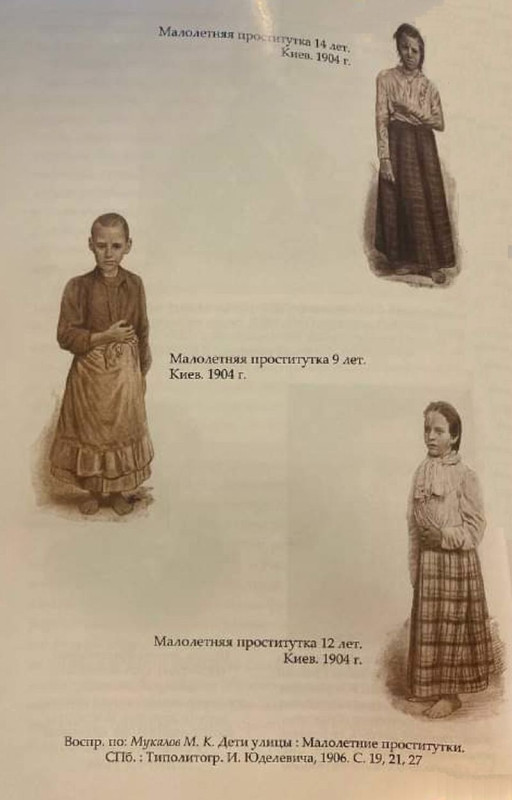 «в Петербурге явление малолетней проституции усилилось до такой степени, что стоит вам вечером выйти на Невский проспект и так называемые улицы, где промышляют проститутки, как вы непременно встретите среди них малолетних девочек, открыто пристающих к проходящим мужчинам. Иногда они гуляют группами в сопровождении своих сутенёров, тоже малолетних мальчишек, с которыми перебрасываются вслух самыми нецензурными словечками15».